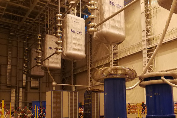 900kW(2×450kW)無(wú)局放變頻電源成套系統應用于±1100kV直流換流變局部放電試驗。--新疆電科院,新疆±1100kV昌吉站。